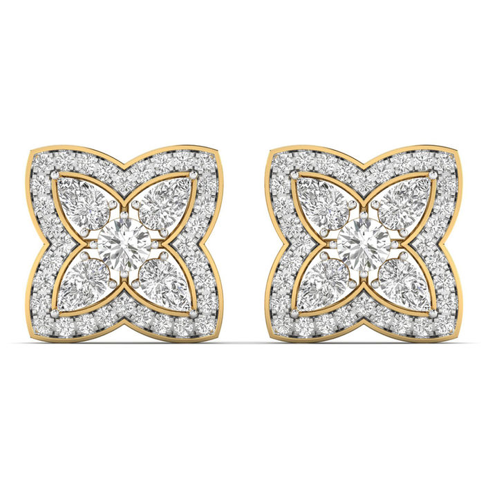 Gracefully designed, these captivating stud earrings feature an intricate floral motif adorned with round and pear-cut lab-grown diamonds, delicately framed by a pavé halo and beautifully set in warm 14kt gold. A perfect choice to add refined sparkle to festive celebrations, elegant evenings, or elevate your everyday style.